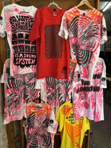 One-off, original t-shirts — printed edge-to-edge, no two the same. Built from Vectorpunk’s rave–punk archive, each piece is a unique artefact. Expect the occasional splotch or overlap — this is anti-consumerist, DIY punk, not mass production.